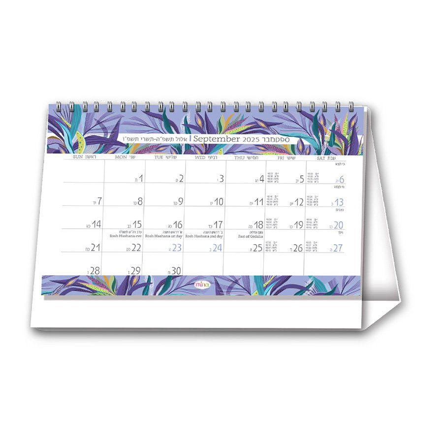 📅 לוח שנה שולחני עברי-לועזי – מינה (דגם טבע סגול)