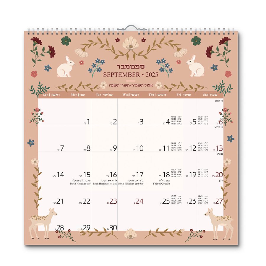 התחילו את השנה עם לוח שנה שמשלב סדר ויופי באווירה טבעית וחמימה 🌸🦌🐇. הלוח משלב בצורה ברורה ונוחה את התאריכים העבריים והלועזיים, כולל חגים, מועדים, זמני הדלקת נרות ושבתות ✨.