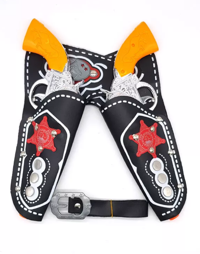 נרתיקים לאקדחים עם אקדחים וחגורה לתחפושת קאובוי