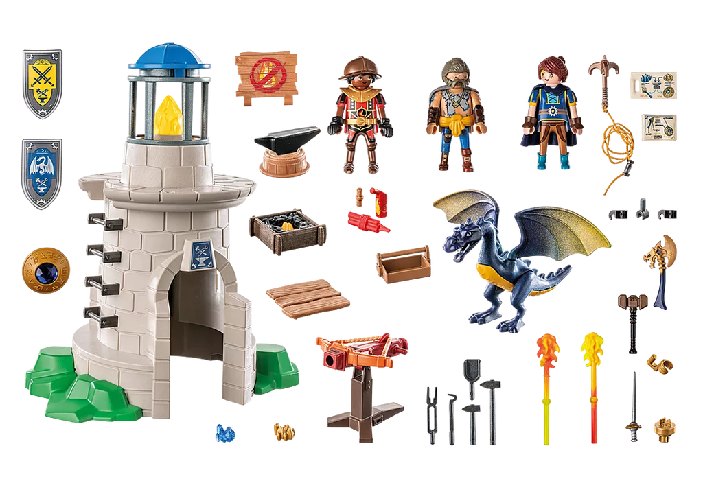 הכינו את עצמכם להרפתקה אגדית עם סט הפליימוביל "מגדל הקריסטל הקסום" מסדרת Novelmore! צאו לקרב, הגנו על הקריסטל הקסום ושתפו פעולה עם אבירים אמיצים ודרקון מעופף. מתאים במיוחד לילדים שאוהבים לשלב דמיון, אסטרטגיה ואקשן בלתי נגמר!