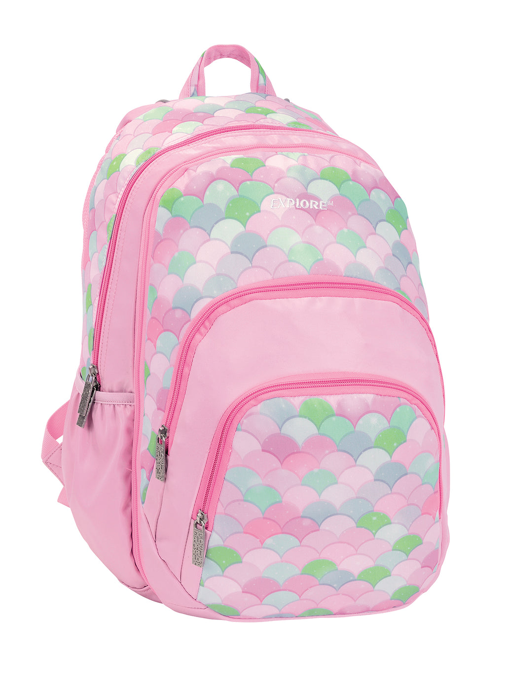 🎒 תיק גב Explore מתפרק – עיצוב קשקשי בת ים ורוד, נפח 32 ליטר, גב אורטופדי ונוחות מושלמת!