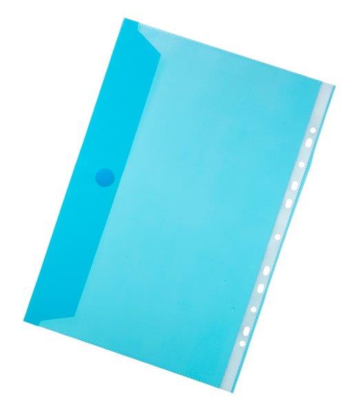 שמרדף איכותי בצבע כחול שקוף, עם סגירה צדדית (צמדן), המיועד לשמור על מסמכים חשובים בצורה מסודרת ובטוחה.