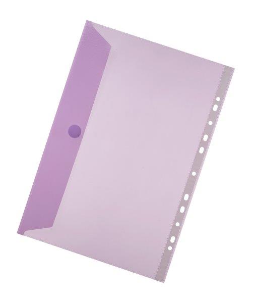 שמרדף איכותי בצבע סגול שקוף, עם סגירה צדדית (צמדן), אידיאלי לשמירה על מסמכים חשובים בצורה מאובטחת ומסודרת.