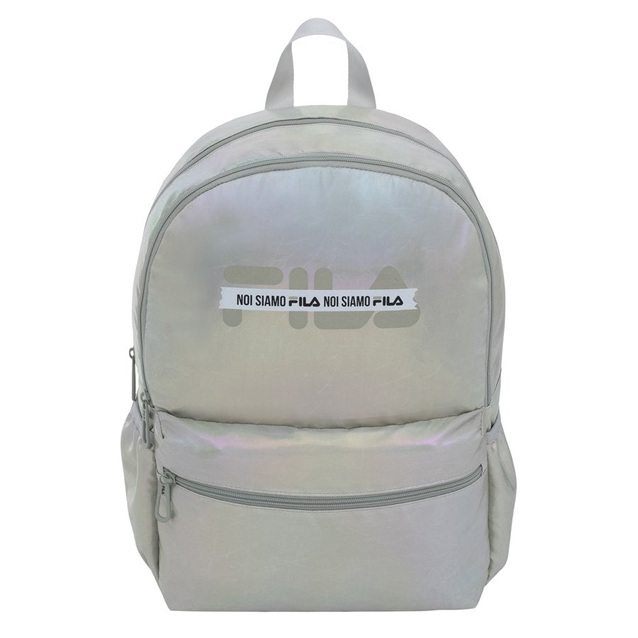 תיק גב ייחודי מבית FILA בעיצוב מינימליסטי ואלגנטי בגוון כסוף עם ברק פנינה עדין. מושלם לבית הספר, לאוניברסיטה או ליום יום – עם שילוב מושלם של נוחות וסטייל.
